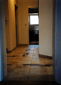 Bodenbelagsgestaltung Diele, mit VuB, Serie Indian Summer, Farbe weiss-grau 33/33 cm, mit Bodenbordüren 16/33 cm.